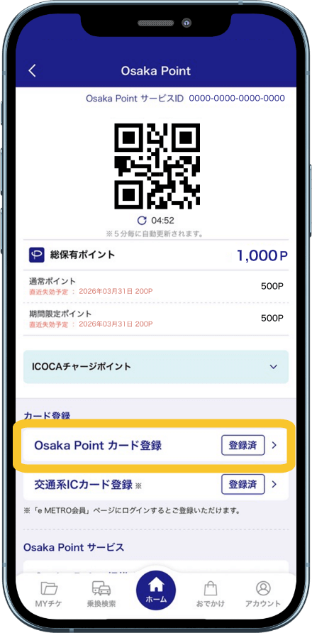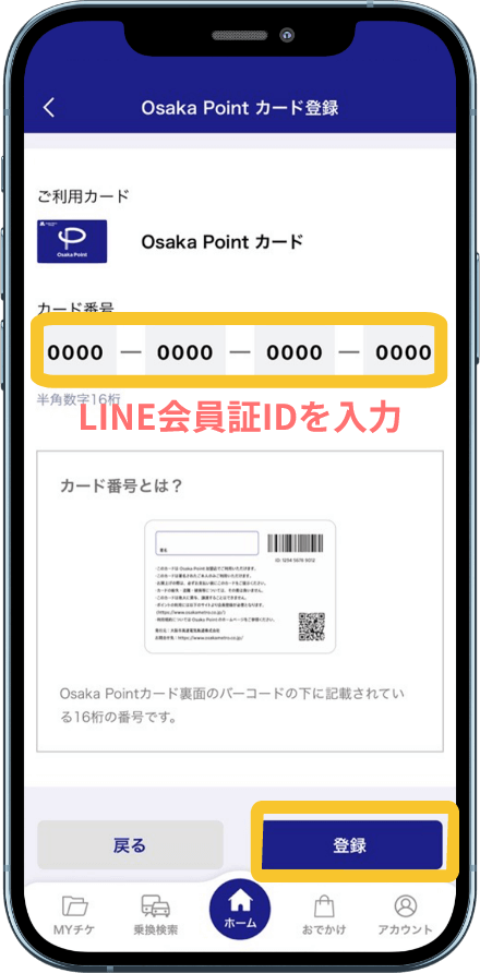※一度削除したOsaka Pointカードは再登録できません。(登録できるカード番号は1つです。)