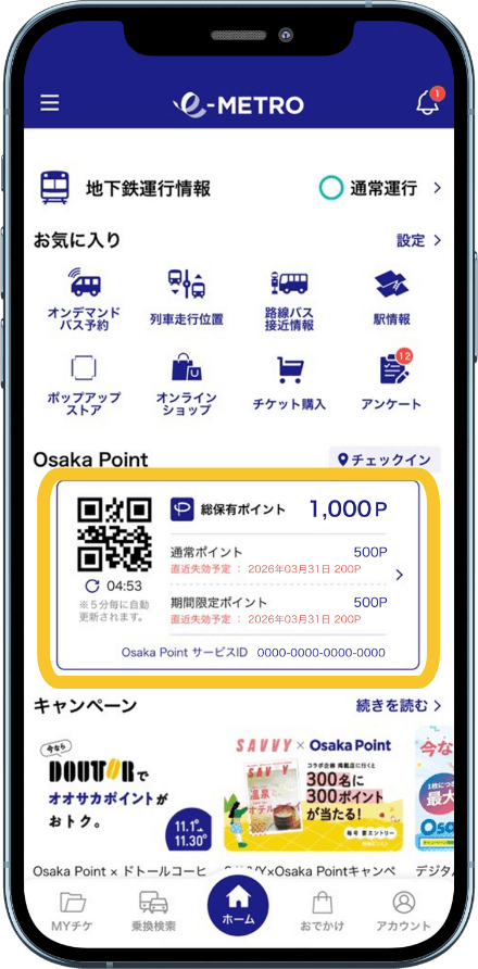 - ・ポイントを利用するにはe METROアプリとLINE会員証の連携が必要です。