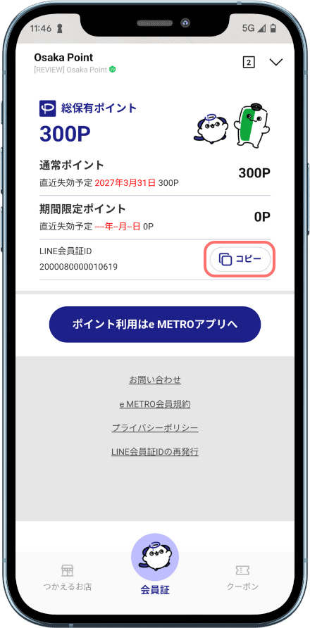 LINE会員証より「LINE会員証ID」を確認し、e METROアプリに連携してください。