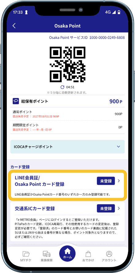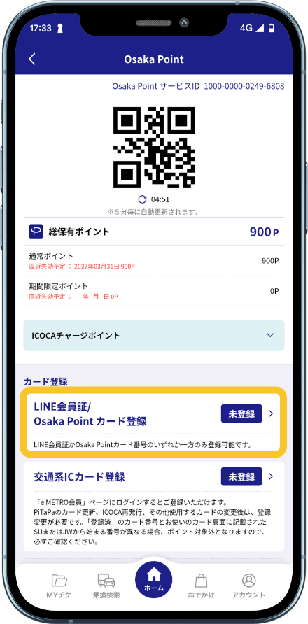 - 06「LINE会員証/Osaka Pointカード登録」をタップ