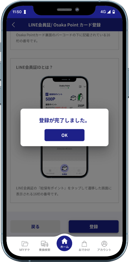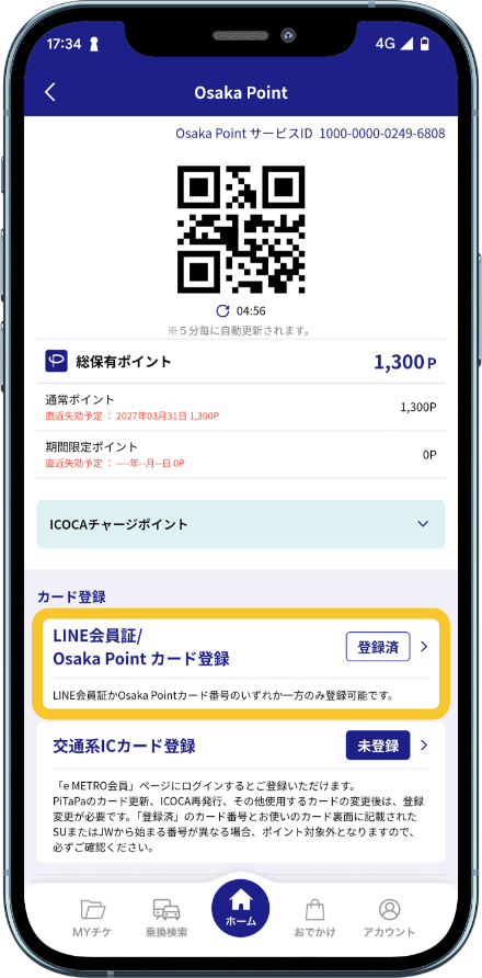 - 02「LINE会員証/Osaka Pointカード登録」をタップ