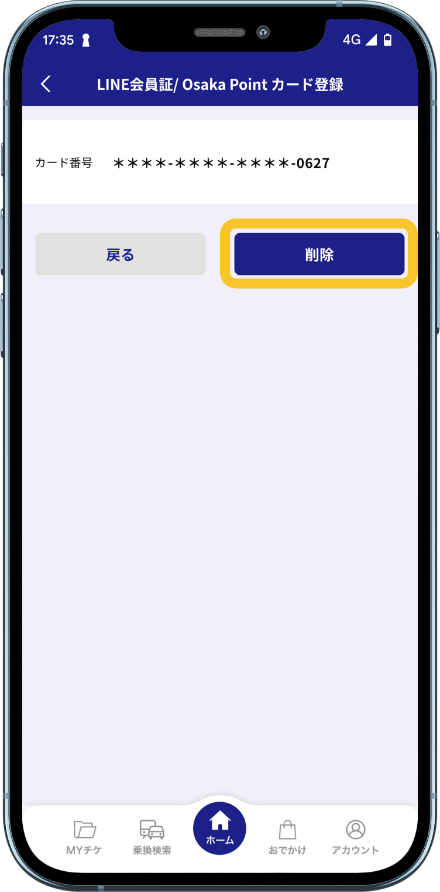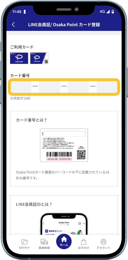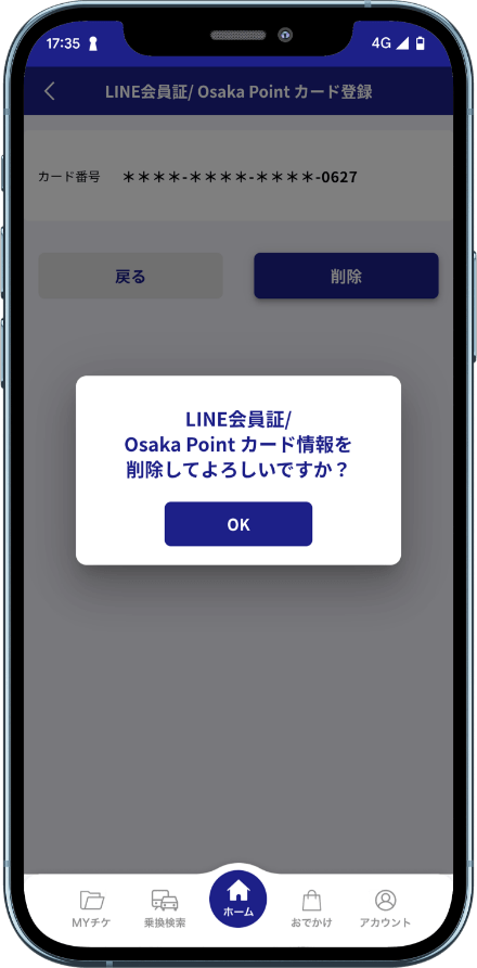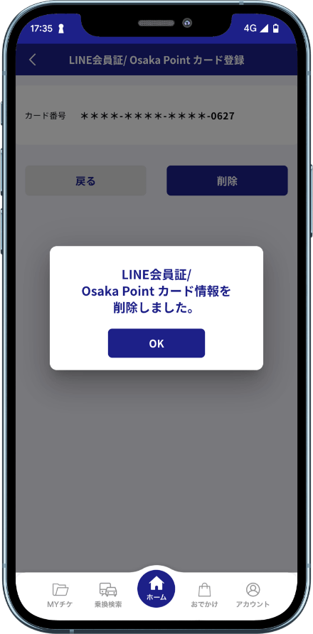 ※一度削除したOsaka Pointカードは再登録できません。(登録できるLINE会員証ID/Osaka Pointカード番号は1つです)