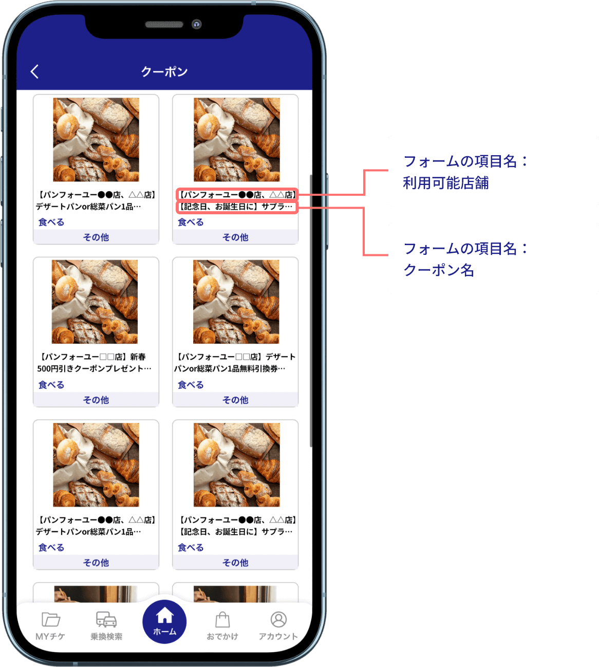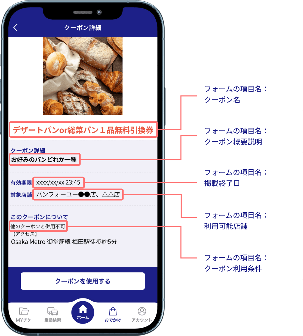 フォームで入力した内容はe METROアプリクーポンページ内の各項目に反映されます。