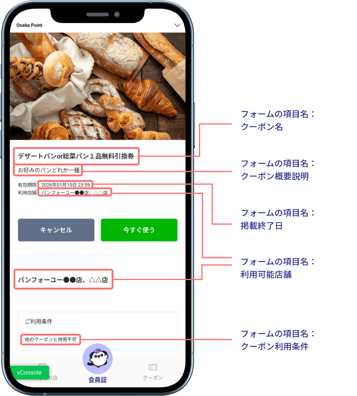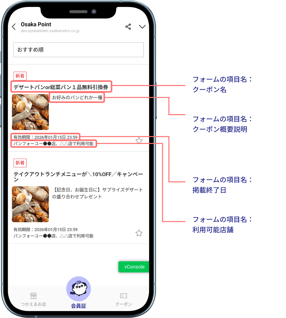 Osaka Point LINE会員証 クーポンページへの反映イメージ