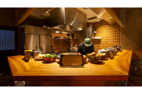 洗練された雰囲気の店内には、天然木を使用した大テーブルのお席と臨場感あふれるカウンター席を完備。