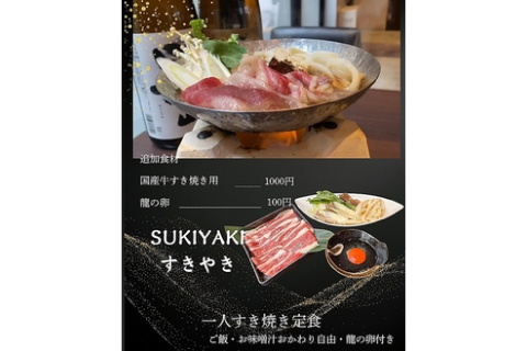 当店のすき焼きは産地にこだわった、上質なお肉をご使用しております。真ふぐは天然ものにこだわり、使用しております。