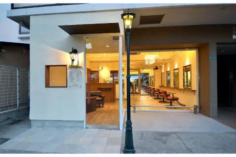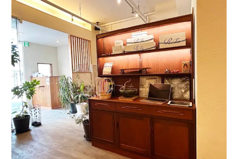 こだわりのアンティーク家具と落ち着いた店内、フルフラットのシャンプー台。