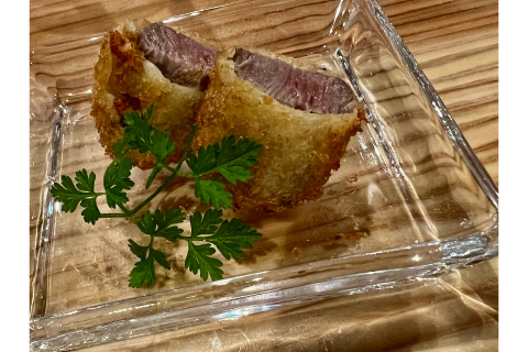 串揚げは自家製ソースを始め、7種のソースで味わいを変えながら楽しめます。また、料理に寄り添うワインも赤・白・スパークリングをワインの専門業者よりバランスよく取り揃え。今まで味わったことのない串揚げを楽しめます。カウンターでは揚げたてを最良のタイミングで提供し、テーブル席では会話と共にゆったりとした時間を過ごせます。