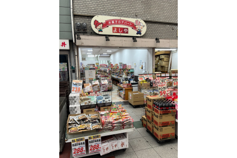 大阪市港区八幡屋にあるおかしのデパートよしや八幡店は、毎日10:00~19:00まで営業しているみんなのお菓子屋さん。