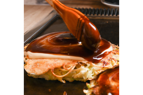 つなぎを抑え、キャベツを主役にしたお好み焼きは、季節ごとに産地や切り方まで調整し、素材本来の甘みとふんわりとした食感を引き出しています。お好み焼きやモダン焼きはすべてスタッフが目の前の鉄板で焼き上げ、焼き加減や仕上がりまで計算された職人技で、ベストな状態で提供されるのも大きな魅力の一つです。お好み焼きに鶴橋風月特製の極太たまご麺を乗せて焼き上げるモダン焼きも、大人気看板メニューのひとつ。