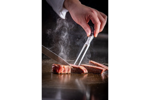 国産黒毛和牛の肉の目利きには絶対的な自信があります!是非、ご賞味ください!!最高の状態で保存し、注文後にカットしてすぐに調理します。空気に触れる時間を短くすることでお肉の鮮度はもちろん、うまみなどを逃がしません。食材はもちろん鉄板焼きを知り尽くした職人が大胆かつ丁寧なパフォーマンスで焼き上げます。できたてをすぐお召し上がり下さい。お好きなお酒とのマリアージュを楽しみながら会話も弾むはずです。