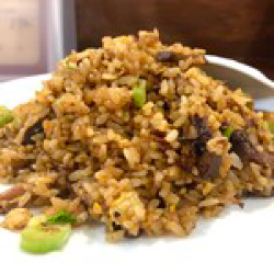 食べ飽きることのない絶品。メニュー名どおり角煮がゴロゴロ入り、その煮汁で味つけられたしっとり系のチャーハンは、他所では食べることができないもので、これだけを目的にしてでも定期的に通いたくなってしまうほど。