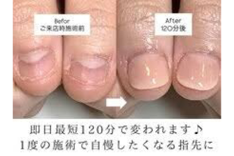 深爪/二枚爪/肥厚爪/深爪/巻き爪等でお悩みの方に、丁寧なカウンセリングと専門的な施術をご提供します。「爪を噛んでしまう」「爪を見られるのが恥ずかしい」そんなお悩みを解消し、人前で堂々と見せられる指先へ!